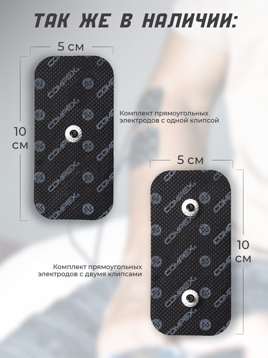 Комплект самоклеящихся электродов (4 шт.) для миостимуляторов Сompex любой модели (SP, Runner, Fit, Performace и др.) в герметичной упаковке. Можно использовать для мышечных стимуляторов и других известных брендов, работающих с кнопочной системой. Compex - мировой лидер в ЭМС технологиях и производит продукты самого высокого качества. Электроды Compex Easysnap Perfomace - это премиальный продукт, качеством которого вы останетесь довольными на 100%, едва ли вы сможете найти электроды, которые превзойдут эти по потребительским свойствам. Гипоаллергенные, многоразовые гелевые электроды. Средний срок службы: 15-30 наклеиваний. Для максимальной длительности использования электрода кожа должна быть чистой, без лосьона, пота, жира и волос. Когда электроды пора менять? Они не держатся на вашей коже, вы ощущаете менее интенсивные или неудобные сокращения мышц, к клеевой поверхности прилип пух или пыль.