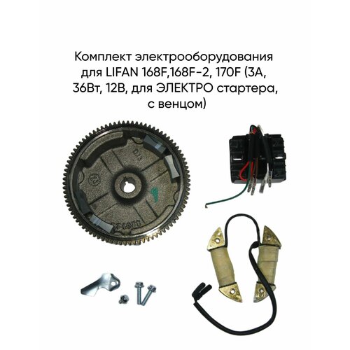 Комплект электрооборудования для LIFAN 168F,168F-2, 170F (3А, 36Вт, 12В, для электро стартера, с венцом): сравнение цен, характеристики, фото, актуальное наличие и цены.