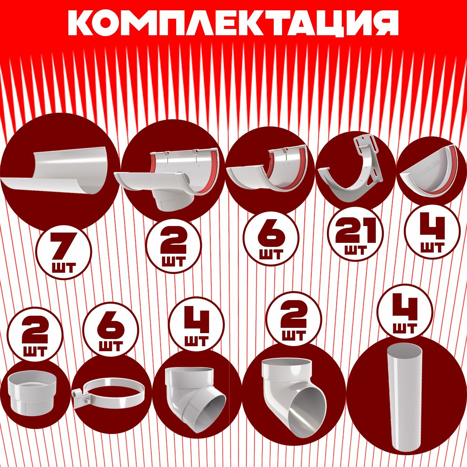Комплект элементов водостока Grand Line на 10,5 м карниза (120мм/90мм) белый, водосточная система для крыши пластик Гранд Лайн ( RAL 9003 пломбир ) комплект ПВХ: сравнение цен, характеристики, фото, актуальное наличие и цены.