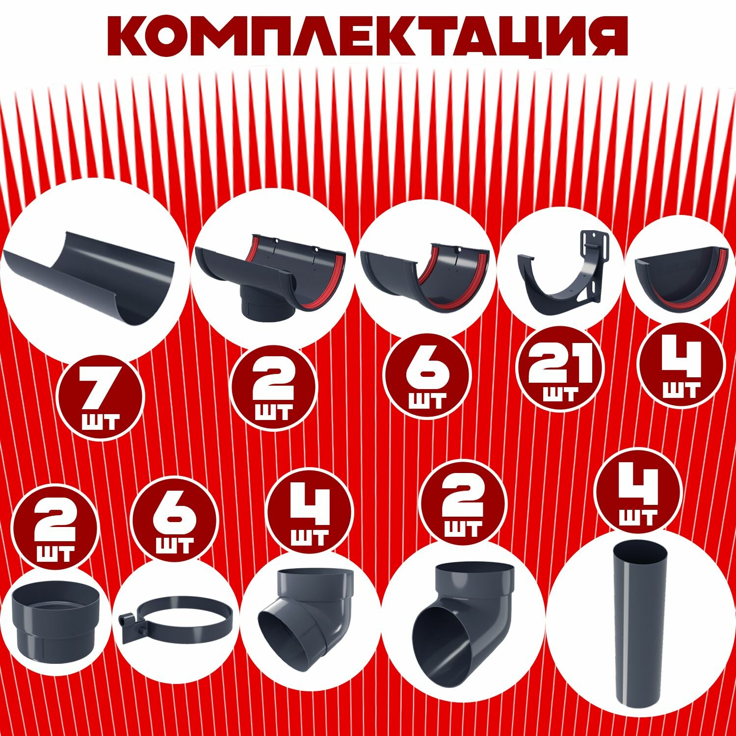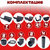 Комплект элементов водостока Grand Line на 10,5 м карниза (120мм/90мм) графит RAL 7024, водосточная система для крыши пластик Гранд Лайн ( серый ) ПВХ