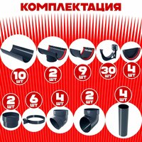 Комплект элементов водостока Grand Line на 15 м карниза (120мм/90мм) графит RAL 7024, водосточная система для крыши пластик Гранд Лайн ( серый ) ПВХ