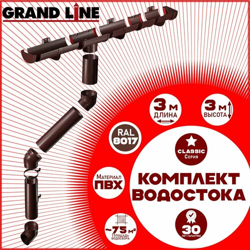 Комплект элементов водостока Grand Line на 3 м карниза (120мм/90мм) коричневый, водосточная система для крыши пластик Гранд Лайн ( RAL 8017 шоколад ) комплект ПВХ: сравнение цен, характеристики, фото, актуальное наличие и цены.