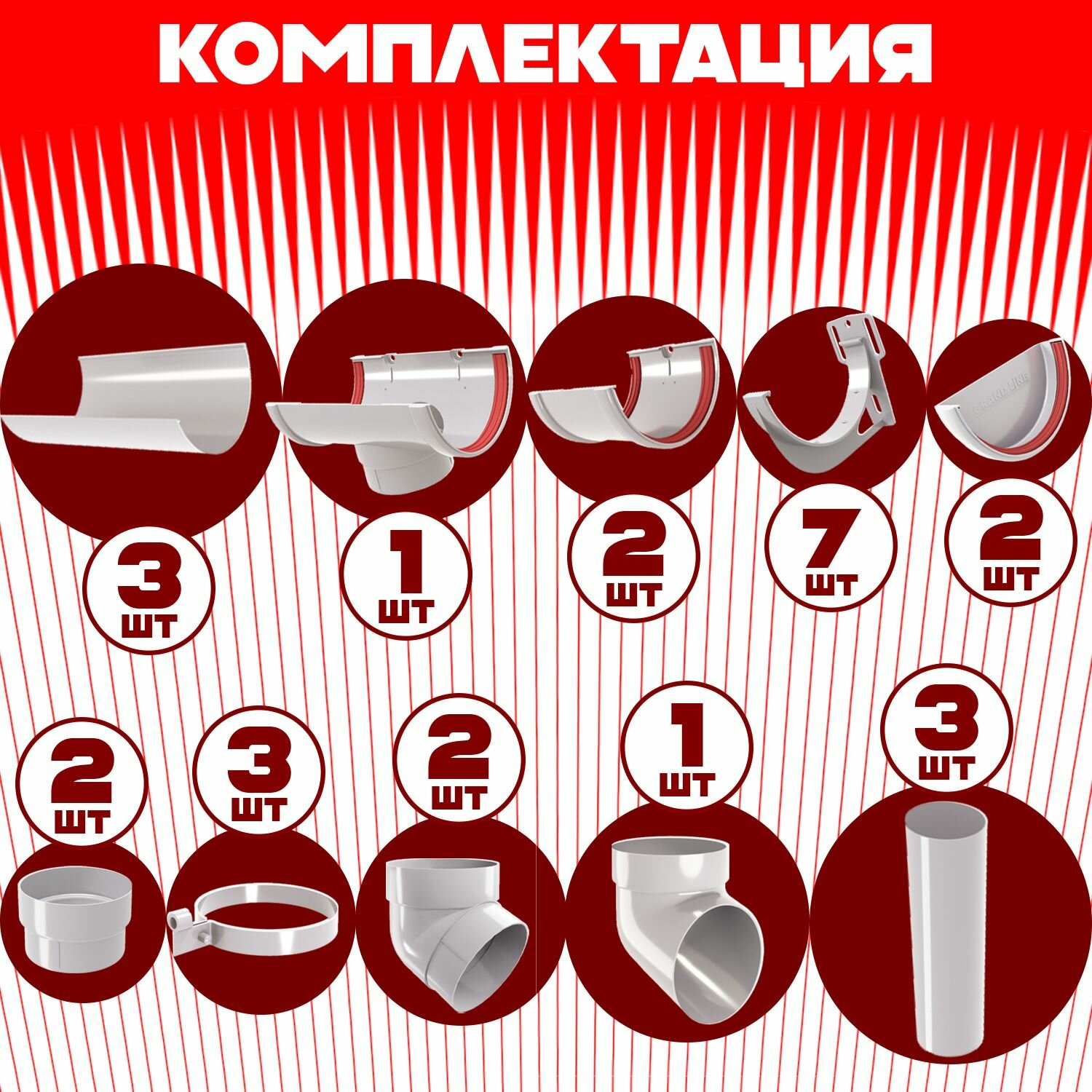 Комплект элементов водостока Grand Line на 3 м карниза по 1 метру (120мм/90мм) белый (RAL 9003 пломбир) водосточная система для крыши пластик (Гранд Лайн ) ПВХ: сравнение цен, характеристики, фото, актуальное наличие и цены.