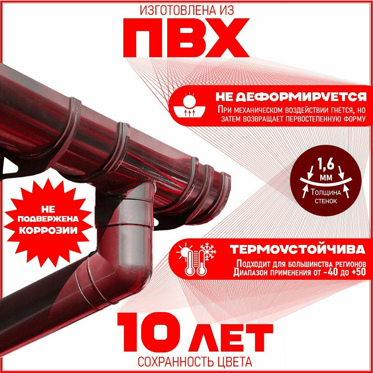 Комплект элементов водостока Grand Line на 3 м карниза по 1 метру (120мм/90мм) RAL 3005 вишневый ( бордовый ) водосточная система для крыши пластик ( Гранд Лайн )ПВХ