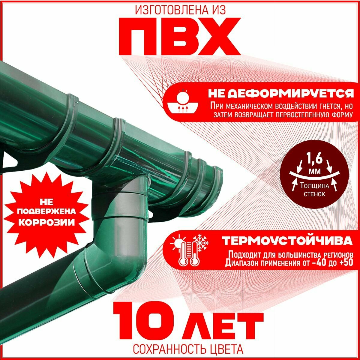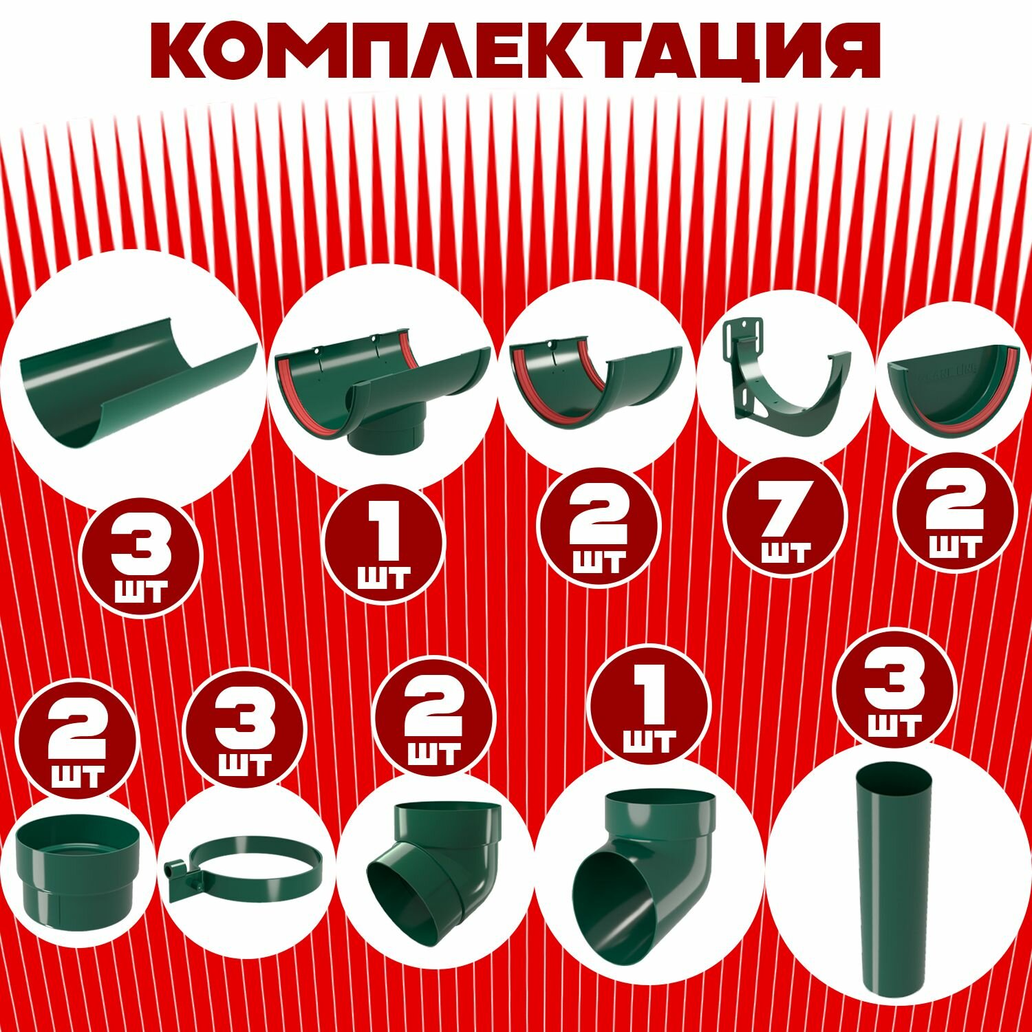 Комплект элементов водостока Grand Line на 3 м карниза по 1 метру (120мм/90мм) зеленый, водосточная система для крыши пластик Гранд Лайн ( RAL 6005 мох ) комплект ПВХ