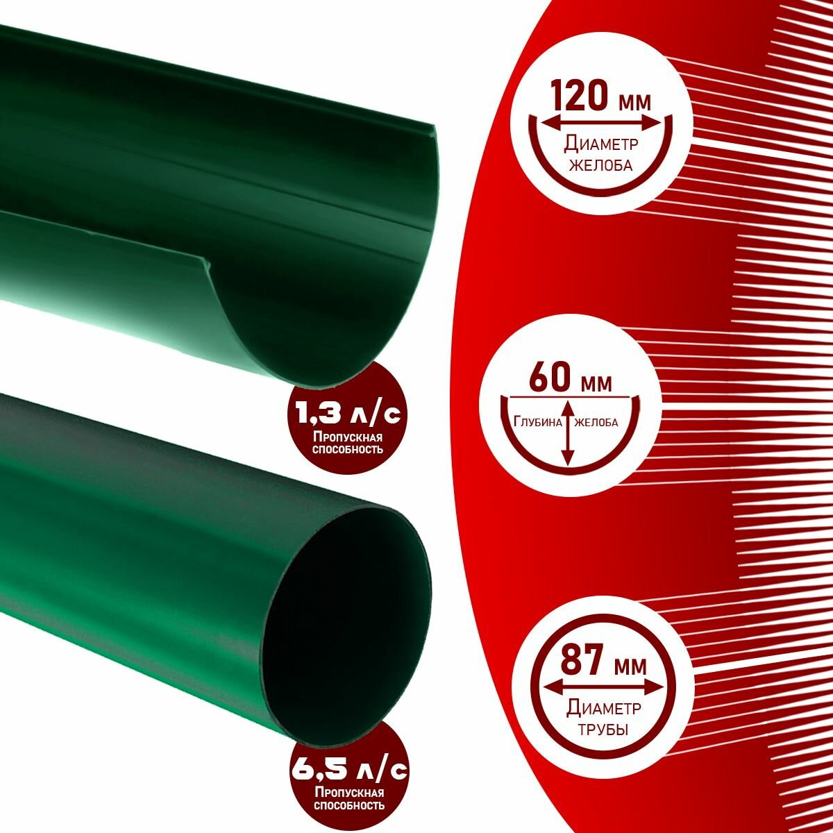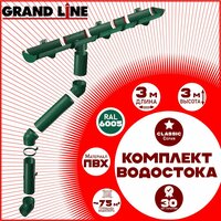 Комплект элементов водостока Grand Line на 3 м карниза по 1 метру (120мм/90мм) зеленый, водосточная система для крыши пластик Гранд Лайн ( RAL 6005 мох ) комплект ПВХ: сравнение цен, характеристики, фото, актуальное наличие и цены.