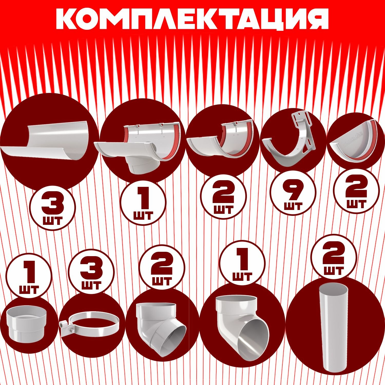 Комплект элементов водостока Grand Line на 4,5 м карниза (120мм/90мм) белый, водосточная система для крыши пластик Гранд Лайн ( RAL 9003 пломбир ) комплект ПВХ: сравнение цен, характеристики, фото, актуальное наличие и цены.