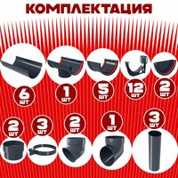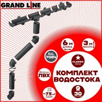 Комплект элементов водостока Grand Line на 6 м карниза по 1 метру (120мм/90мм) графит RAL 7024, водосточная система для крыши пластик Гранд Лайн ( серый ) комплект ПВХ: сравнение цен, характеристики, фото, актуальное наличие и цены.