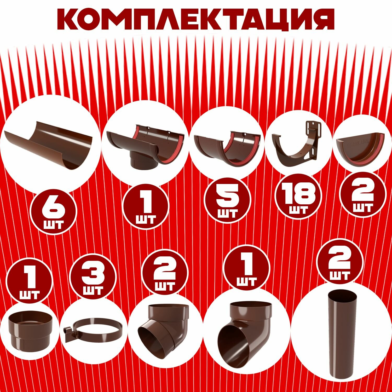 Комплект элементов водостока Grand Line на 9 м карниза (120мм/90мм) коричневый ( RAL 8017 шоколад) водосточная система для крыши пластиковый ( Гранд Лайн )комплект ПВХ