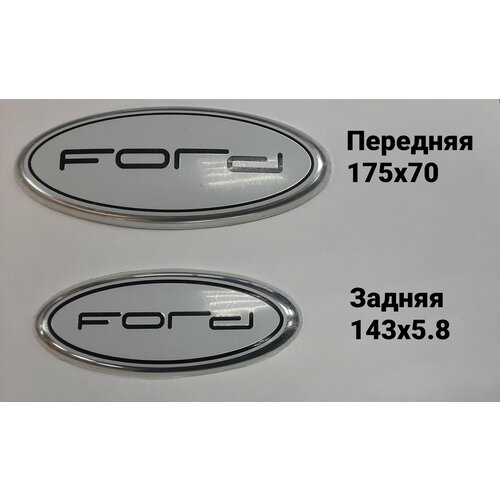 Комплект эмблем Ford Focus 3 2010-2014 до рестайлинг В исполнении белого цвета! Размер: Передняя 175х70 Задняя 143х5.8 Материал- дюраль, с обратной стороны нанесен двусторонний скотч Перед установкой обезжирить посадочное место для лучшей фиксации с ЛКП
