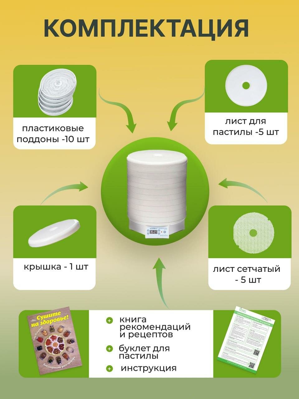 Купить Комплект Сушилка Ezidri FD500 Digital с 10 поддонами, 5 сетчатыми листами и 5 листами для пастилы с доставкой по всей России.