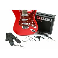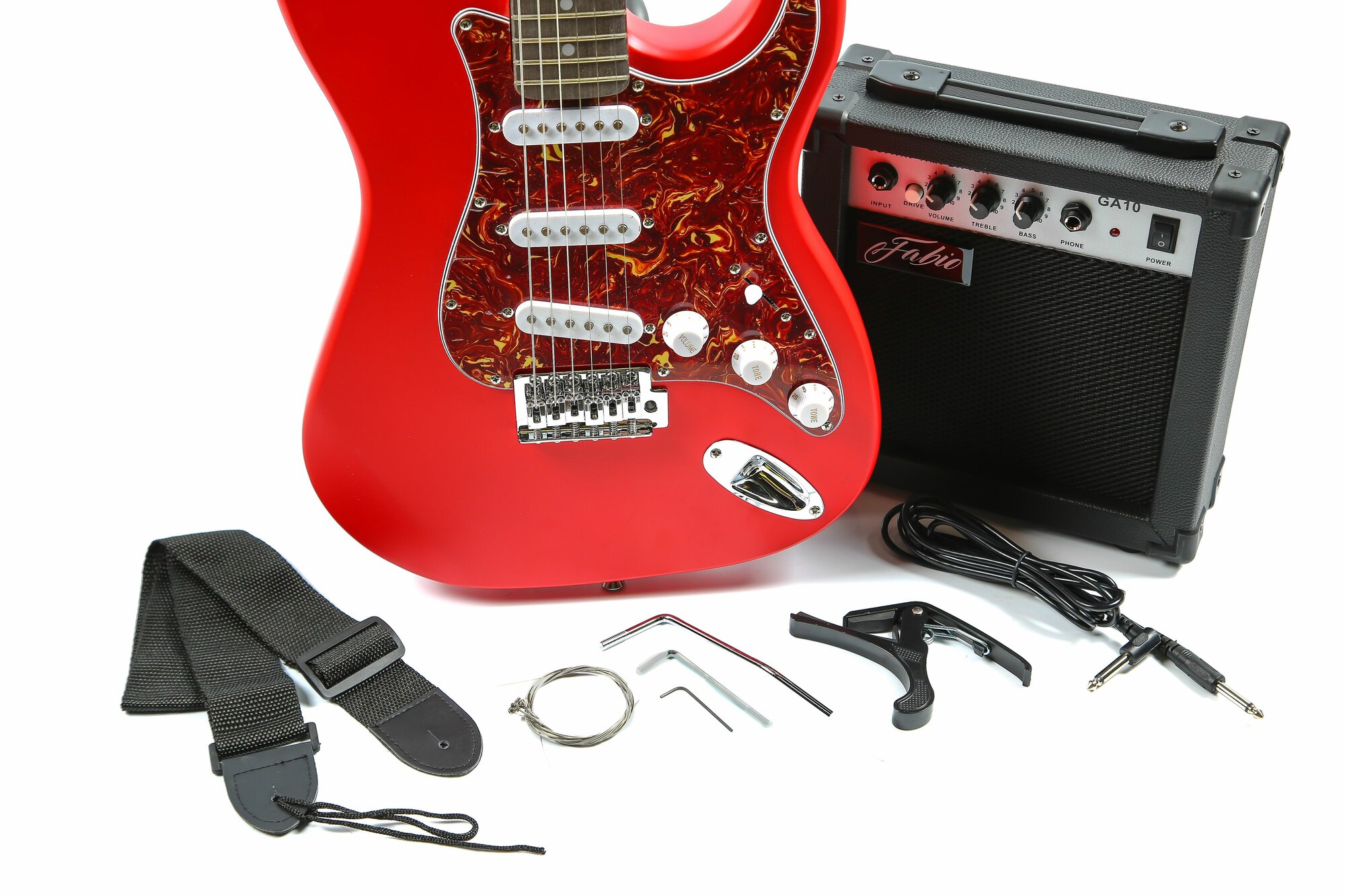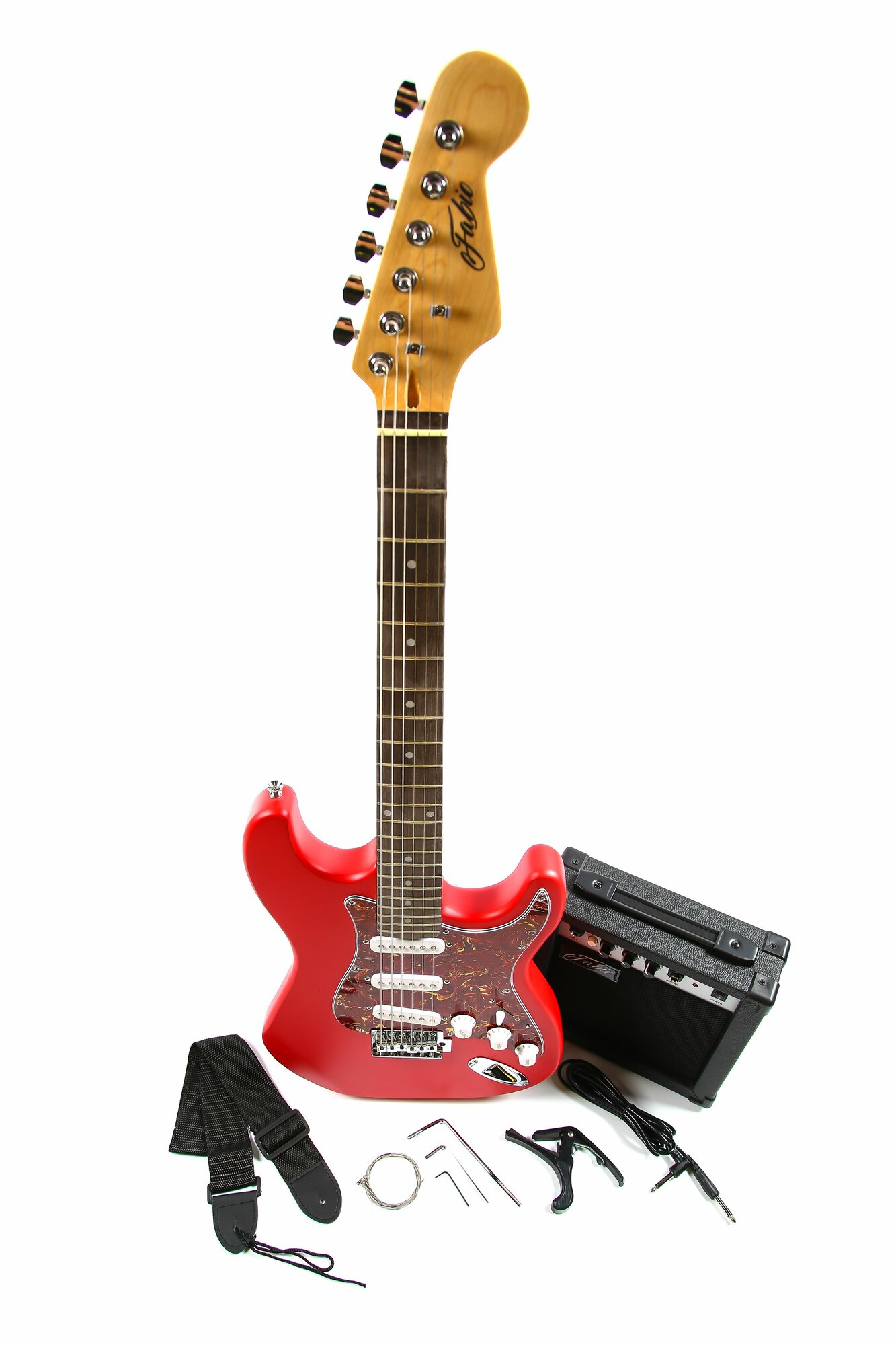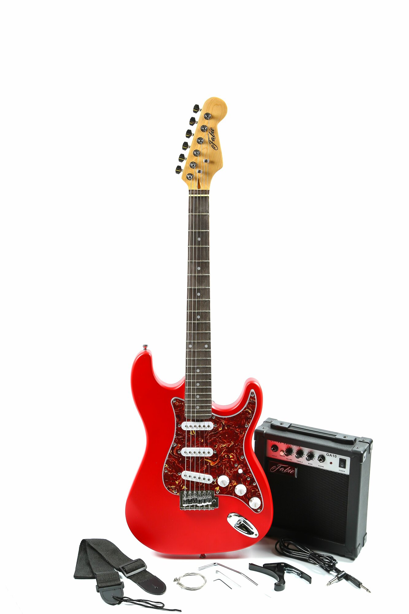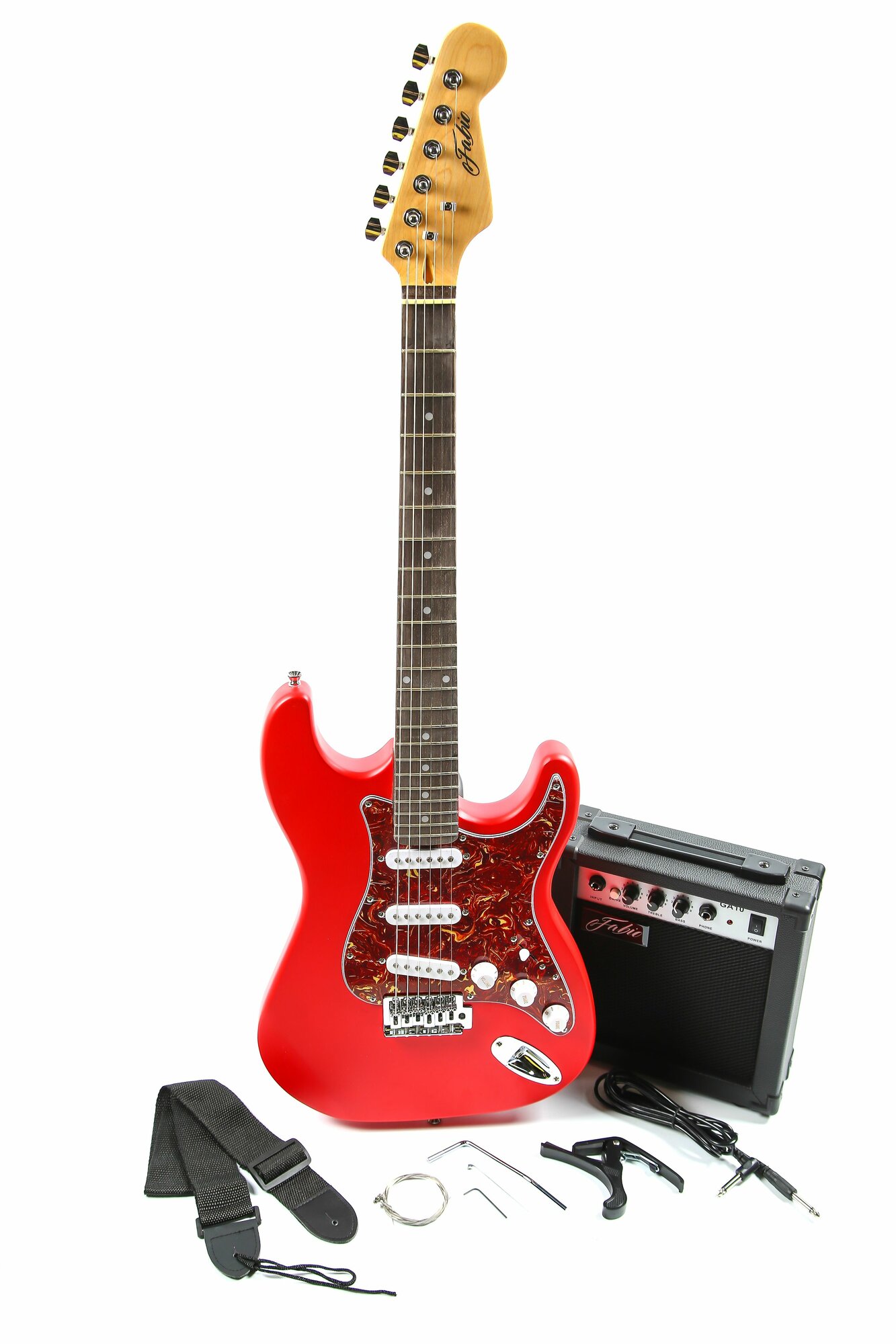 Купить Комплект Fabio ST100 RD MATT (эл. гитара S/S/S, комб. MG-10, чех, рем, кап-тр, струны, стикер, рук-во с доставкой по всей России.