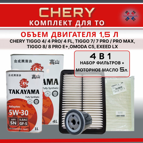 Комплект фильтров представляет собой набор для технического обслуживания вашего автомобиля Chery Tiggo 4/4pro, Tiggo 7/7 pro/7pro max, Tiggo 8/8 pro e+, Omoda C5, Exeed LX с двигателем 1,5 литра!