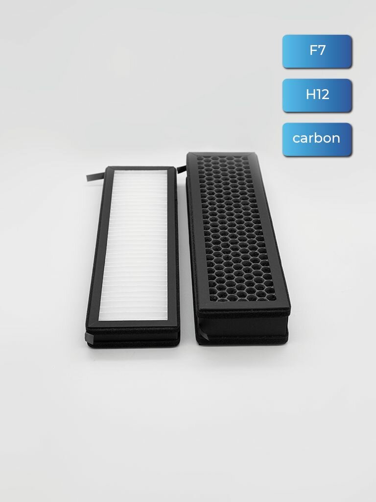 Фильтр F7 эффективно задерживает пыль, аллергены и другие мелкие частицы, что делает воздух в вашем доме более чистым и свежим. HEPA H12 фильтр дополнительно очищает воздух от микроскопических частиц, что особенно важно для людей, страдающих от аллергий и астмы. Угольный фильтр отвечает за устранение неприятных запахов и химических загрязнителей, что создает комфортную атмосферу в вашем помещении.