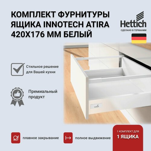Комплект фурнитуры ящика HETTICH InnoTech Atira, белый, 420х176, Германия с доводчиком Silent System, полное выдвижение, 9230059: сравнение цен, характеристики, фото, актуальное наличие и цены.
