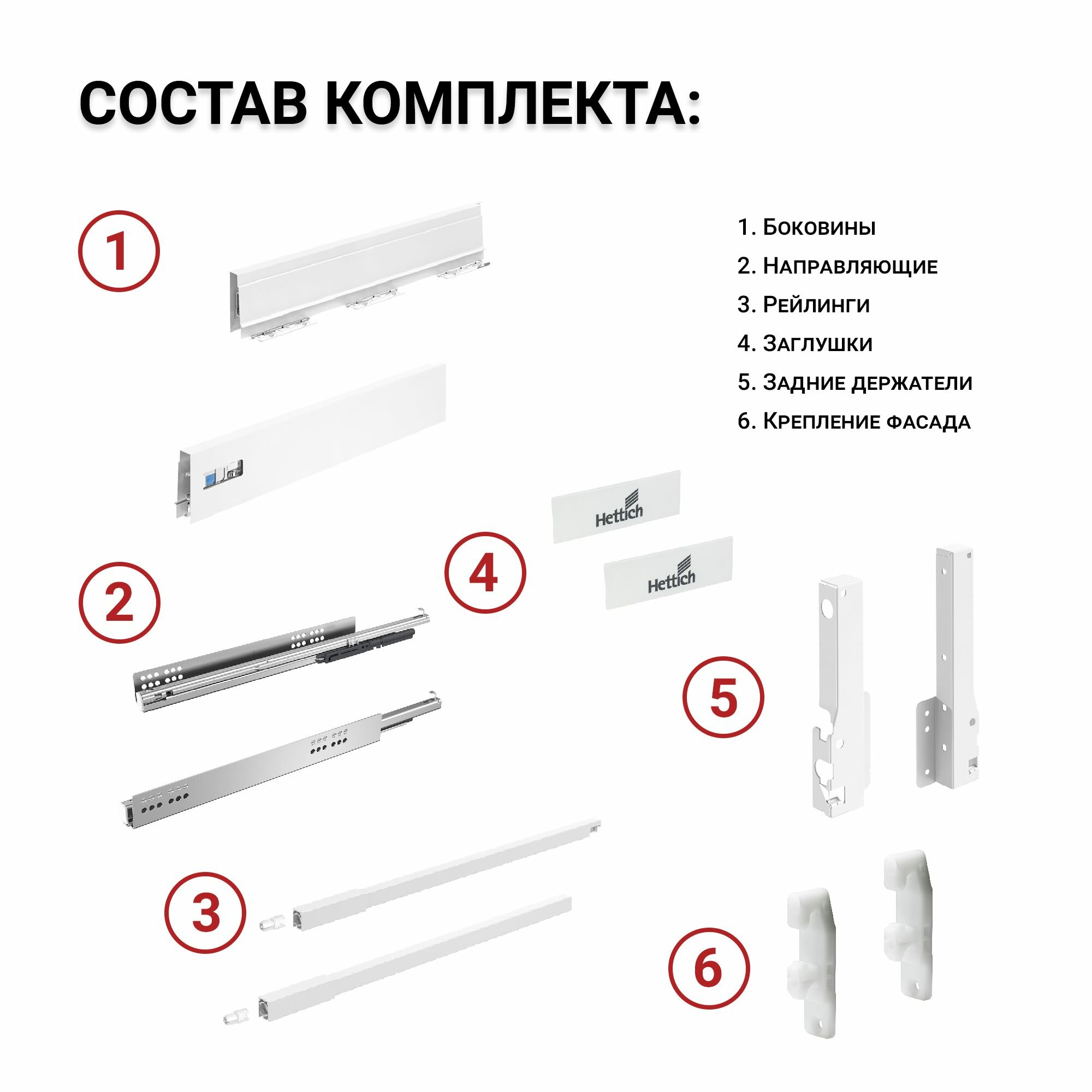 Выдвижной ящик HETTICH InnoTech Atira, белый, 470х70, Германия с доводчиком Silent System, полное выдвижение, 9230048: сравнение цен, характеристики, фото, актуальное наличие и цены.