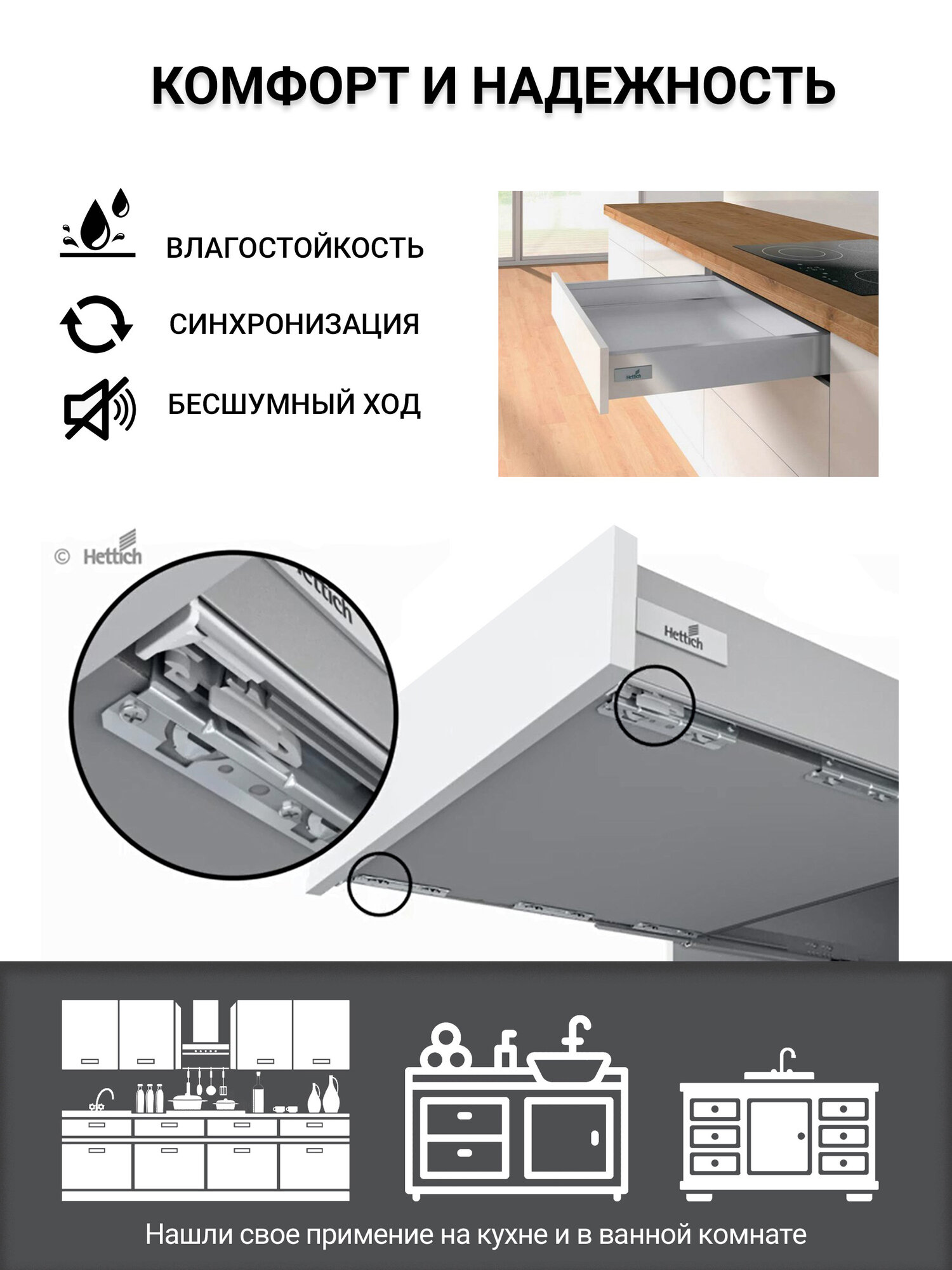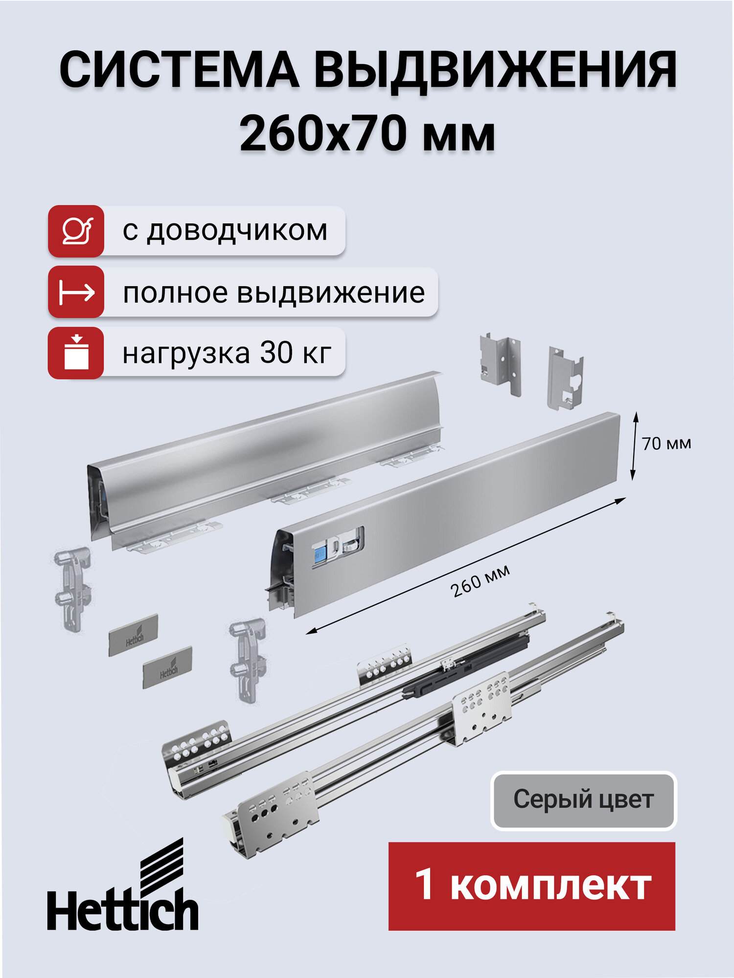 Выдвижной ящик HETTICH InnoTech Atira, серый, 260х70, с доводчиком Silent System, полное выдвижение, 9228876: сравнение цен, характеристики, фото, актуальное наличие и цены.