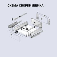 | Подробная комплектация | Боковина ящика, левая (1 шт) и правая (1 шт) Соединитель для задней стенки, левый (1 шт) и правый (1 шт) Соединительный разъём в передней части ящика (2 шт) Заглушка из пластика с логотипом Hettich (2 шт) Направляющая Quadro с доводчиком Silent System, левая (1 шт) и правая (1 шт) Продольный релинг, левый (1 шт) и правый (1 шт) Соединителя передней панели (2 шт) |
