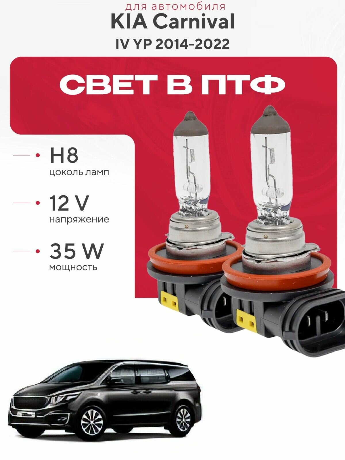 Комплект галогеновых ламп H8 в ПТФ на KIA Carnival IV (YP) 2014-2022. Галогенные лампочки в туманки на КИА Карнивал: сравнение цен, характеристики, фото, актуальное наличие и цены.