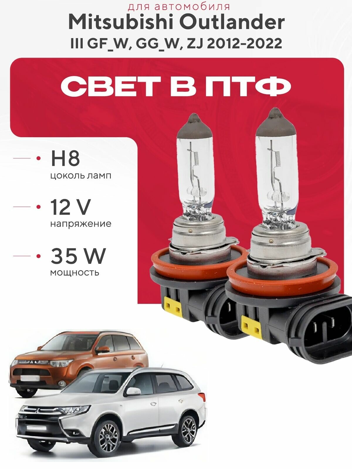 Комплект галогеновых ламп H8 в ПТФ на Mitsubishi Outlander III (GF_W, GG_W, ZJ) дорест. и рест 2012-2022 Галогенные лампочки в туманки на Митсубиси Аутлендер: сравнение цен, характеристики, фото, актуальное наличие и цены.