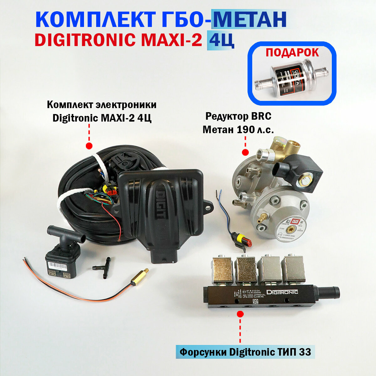 Данный комплект ГБО 4 поколения предназначен для 4 цилиндровых двигателей, работающих на Метане (CNG) и состоит из: