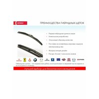 Комплект гибридных щеток стеклоочистителя Denso (2 шт. 650 + 450 мм.). Это изогнутый пружинный аэродинамический каркас который прижимает щетку к лобовому стеклу. Резинка с графитовым покрытием увеличивает срок службы и идеально очищает ветровое стекло. Одни из наилучших показателей по аэродинамике и по уровню шума среди щеток. Простота в установке приятно удивит любого автомобилиста. Подходит для автомобилей с креплением крючок. Привлекательный дизайн гибридной щетки, с тонкой аэродинамической формой. По настоящему Японское качество которое выбрали многочисленные производители автомобилей.