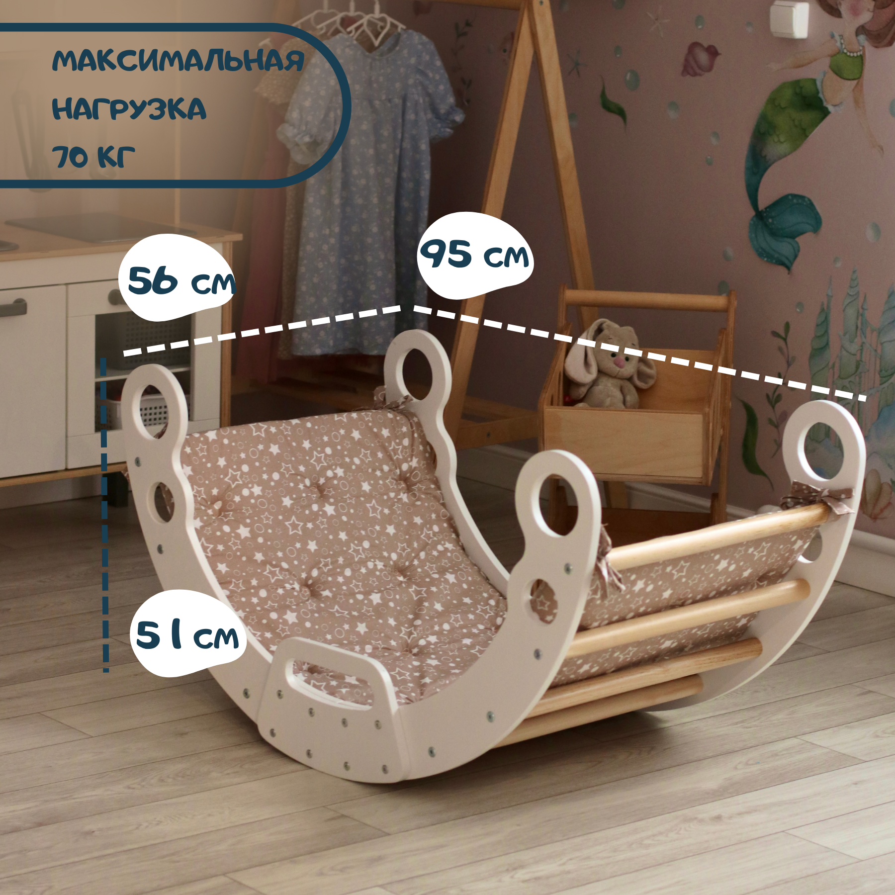 Добавление матраса к арке Пиклер - отличный вариант для родителей, которые хотят создать полноценный летний спортивный уголок для своих мальчиков и девочек, трансформирующийся в зону отдыха и игр на даче. А для малышей наша арка может стать полноценной мягкой кроватью. Деревянная Арка Пиклера открывает бесконечные возможности для дачных игр и исследований, а детская качалка с матрасиком для ребенка представляет собой уютное и успокаивающее место, где малыши могут отдохнуть и восстановить силы. Набор из мягкого детского матраса превращает арку Пиклера в уютную колыбель и удобные домашние качели, которые можно установить дома в гостинной, детской комнате, в летнем домике, в саду и на даче на веранде на лето. Качание успокаивает и расслабляет ребенка, помогает ему переключиться с активных игр и быстрее заснуть. Развивающая напольная качалка детская становится мягким облачком, стоит лишь перевернуть арку и закрепить матрасик для ребенка. Съемный детский матрас обеспечивает ребенку безопасное и комфортное место для отдыха в любой комнате, на даче и на природе. Арка качала станет отличным дополнением к детскому спортивному комплексу совместно с Треугольник Пиклера с горкой.