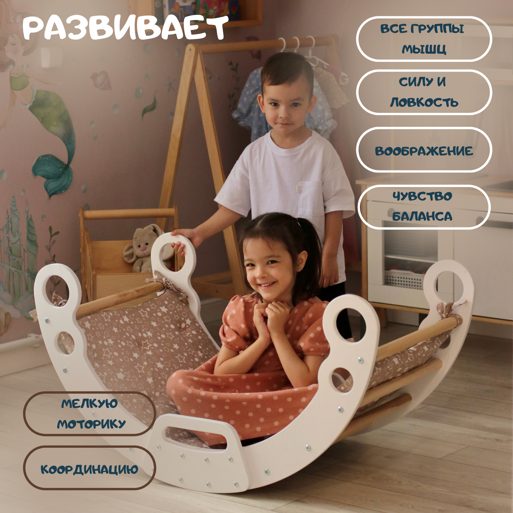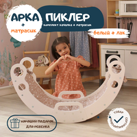 Арка Пиклер — игровой комплекс, завоевавший огромную популярность среди родителей, которые хотят дать своим детям лучший старт в жизни. Это универсальный деревянный тренажер качель для моторики идеально подойдет мальчику и девочке и поощряет открытую игру и творчество, позволяя детям использовать воображение и развивать навыки решения проблем. Лазание развивает крупную моторику: координацию, равновесие и пространственное восприятие. Подъем по лесенке также помогает развивать когнитивные навыки, поскольку детям необходимо планировать и определять последовательность движений рук и ног. Перевернутая арка Пиклера становится качелями для детей, добавляя новое измерение в игровой процесс.