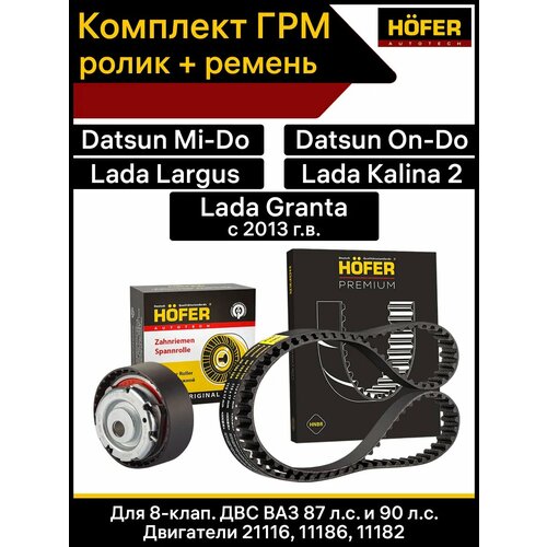 Комплект ГРМ 21116 включает в себя: ремень ГРМ PREMIUM (113 зубьев) и натяжной ролик (автоматический) от компании Hofer.