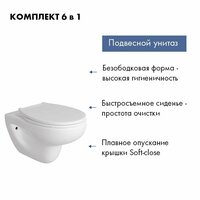 | Комплектация | бачок, инсталляция, монтажный набор креплений, панель смыва, сиденье |