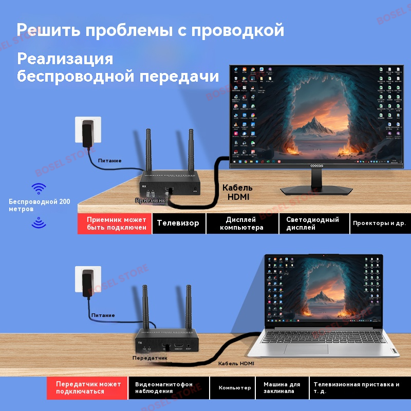 Комплект HDMI TX/RX для беспроводной передачи видео | 1080P, ИК-управление, RJ45 Передача до 200 м: сравнение цен, характеристики, фото, актуальное наличие и цены.