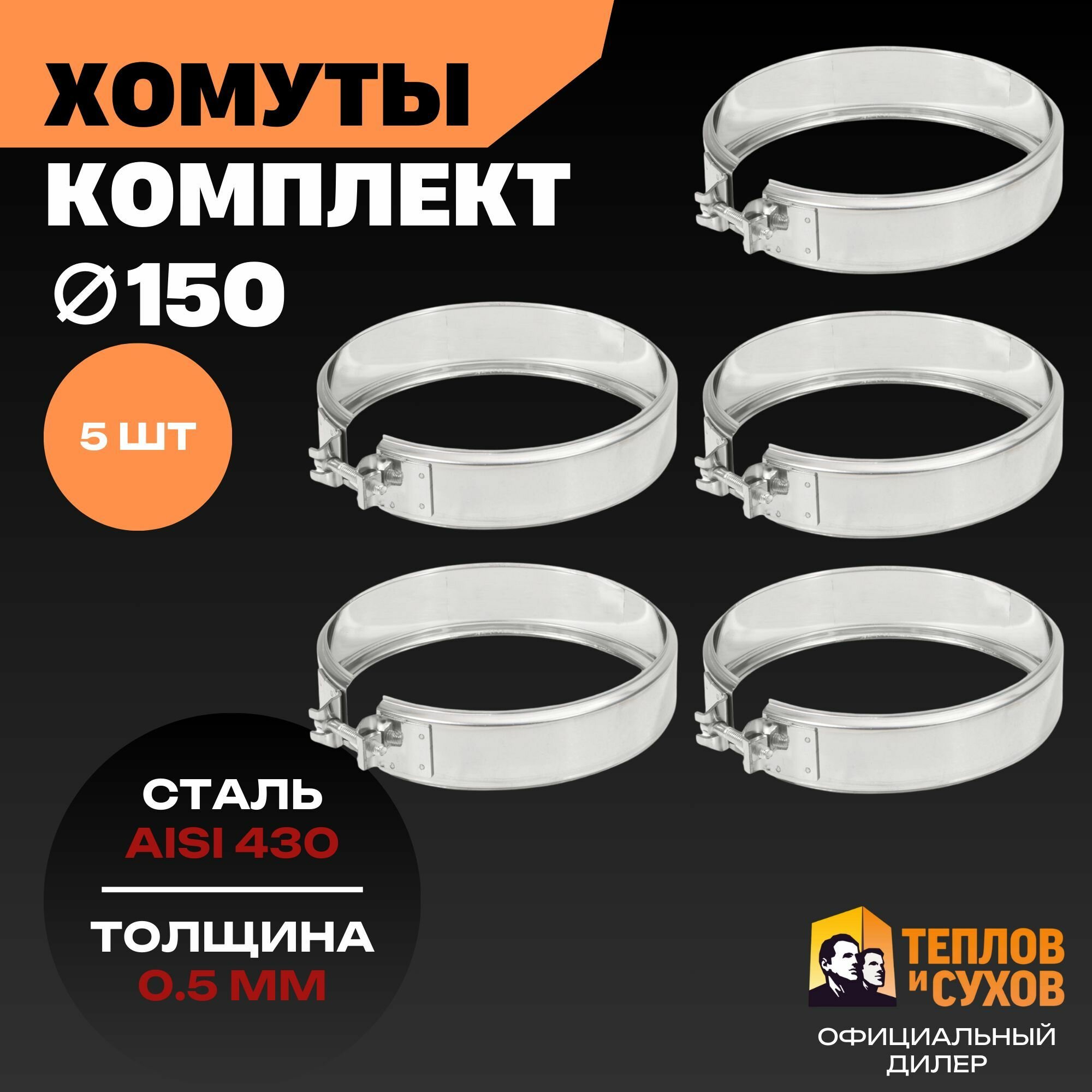 Закажите комплект трубных обжимных хомутов Ø150 мм (5 шт.) от "Теплов и Сухов"! Это идеальное сочетание качества, надежности и доступности для профессионального и частного использования.