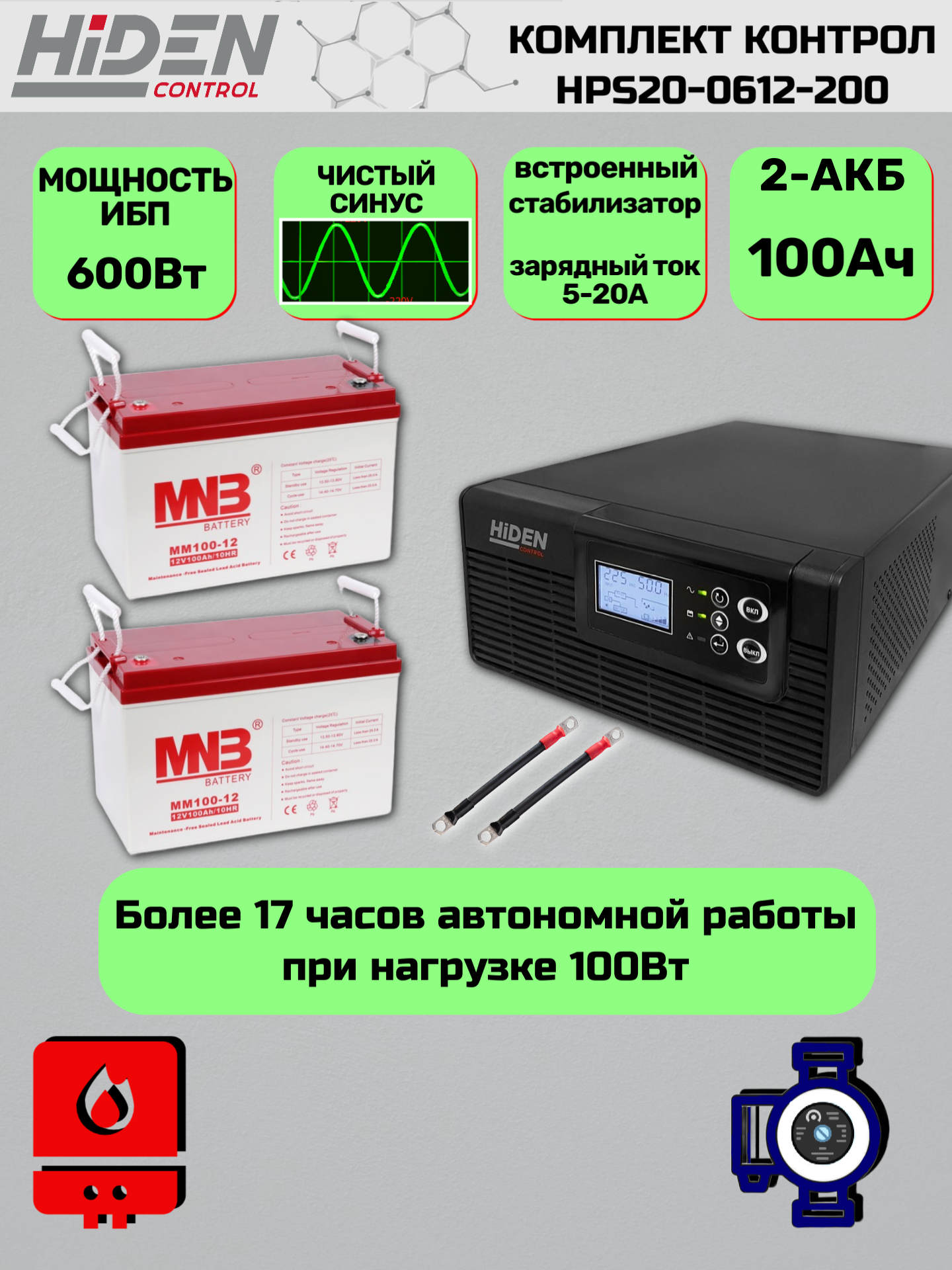 Комплект ИБП Контрол HPS20-0612-200 для газового котла и циркуляционных насосов (600Вт, 200Ач): сравнение цен, характеристики, фото, актуальное наличие и цены.