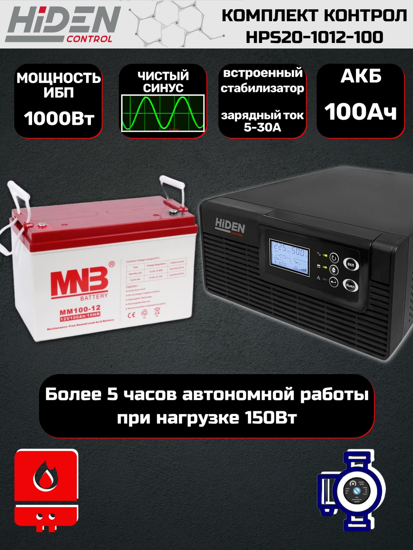 Купить Комплект ИБП Контрол HPS20-1012-100 для газового котла и циркуляционных насосов (1000Вт, 100Ач) с доставкой по всей России. Комплект ИБП Контрол HPS20-1012-100 для газового котла и циркуляционных насосов (1000Вт, 100Ач): сравнение цен, характеристики, фото, актуальное наличие и цены.