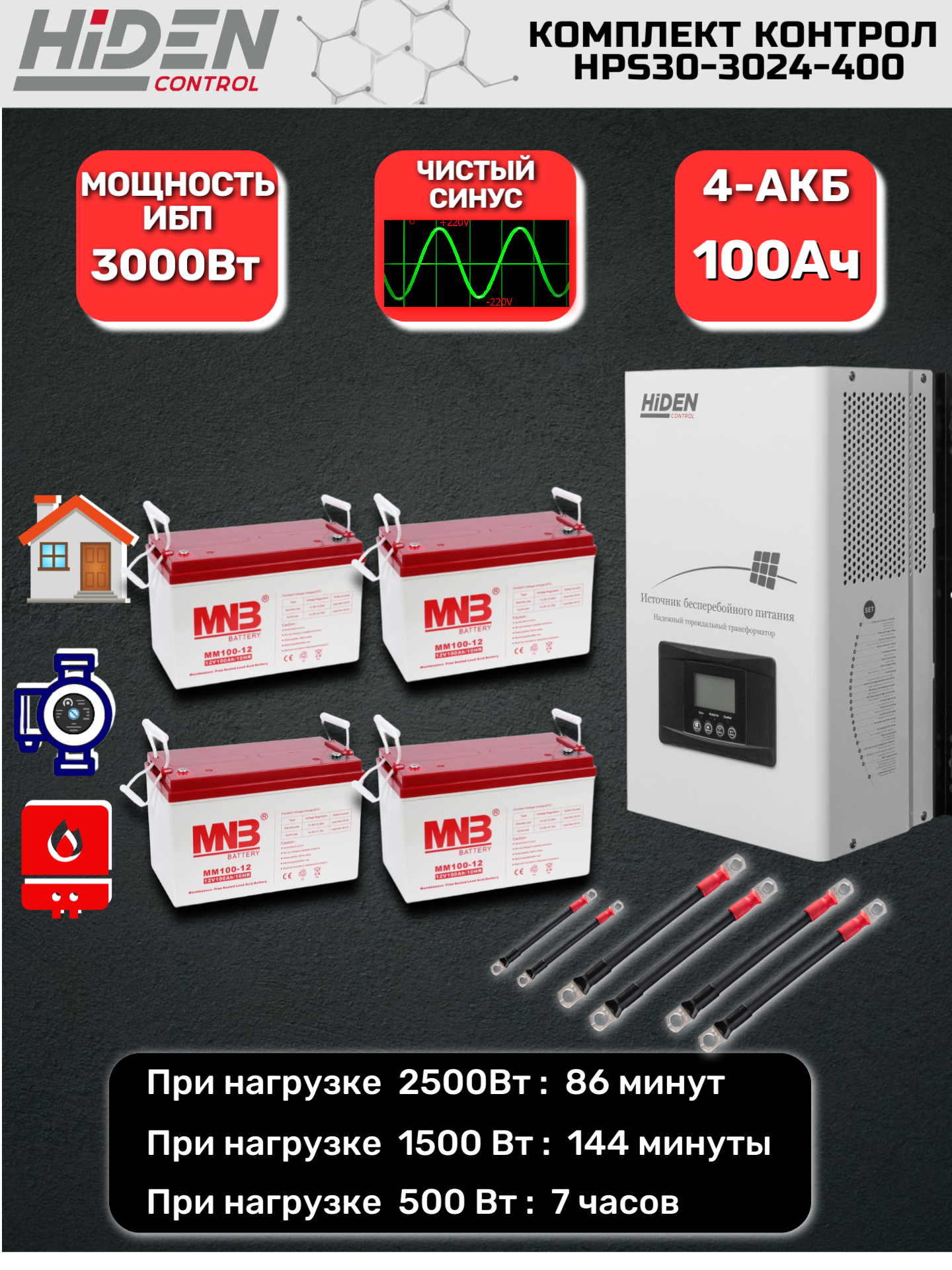 Комплект ИБП Контрол HPS30-3024-400 для дома, котла, освещения, циркуляционных и скважинных насосов (3000Вт, 400Ач): сравнение цен, характеристики, фото, актуальное наличие и цены.