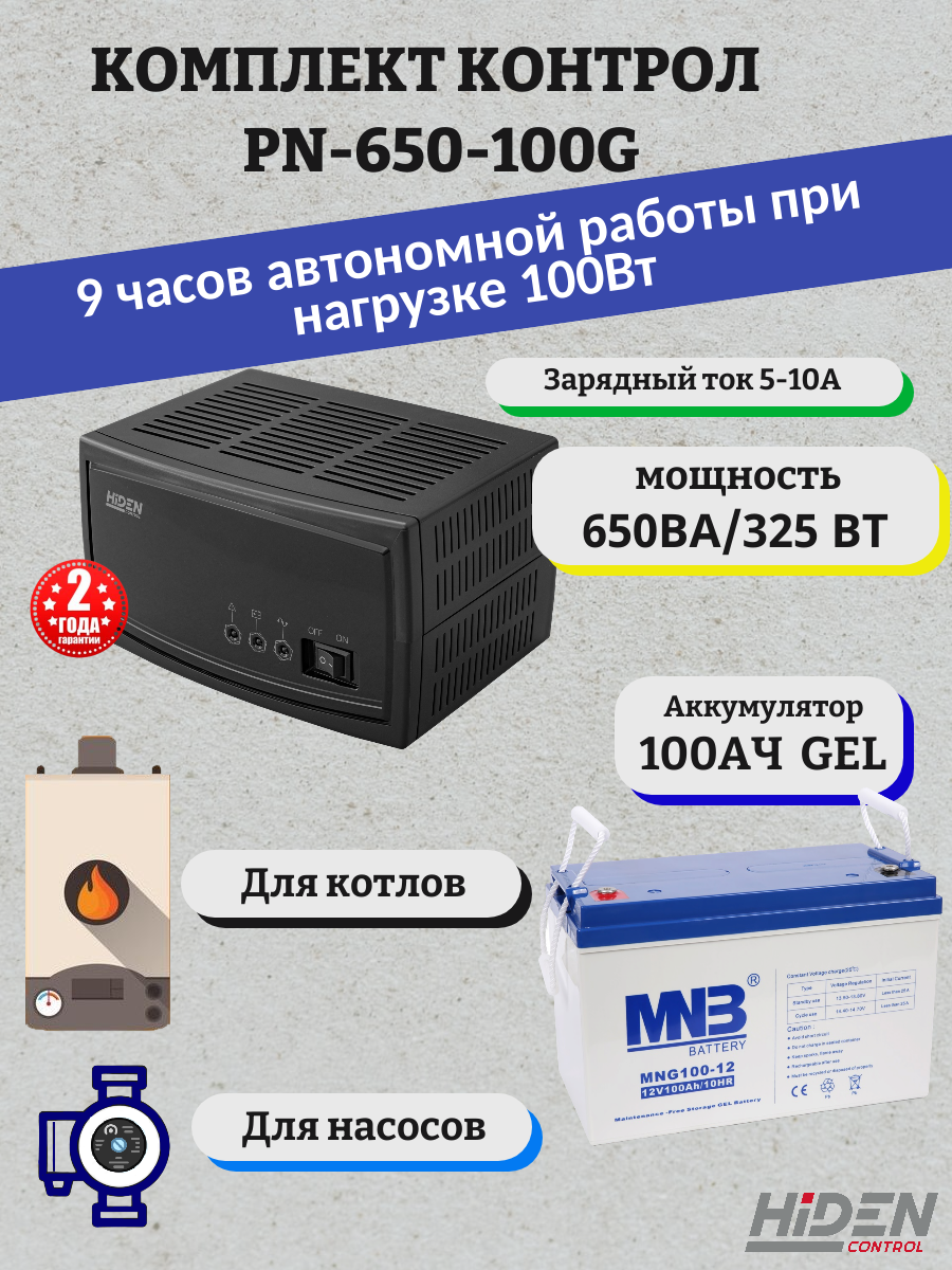 Комплект ИБП Контрол PN-650-100G для газового котла и циркуляционных насосов (325Вт, 100Ач): сравнение цен, характеристики, фото, актуальное наличие и цены.