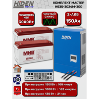 Купить Комплект ИБП мастер HS35-3024М-300 для дома, котла, освещения, циркуляционных и скважинных насосов (3000Вт, 300Ач) с доставкой по всей России.