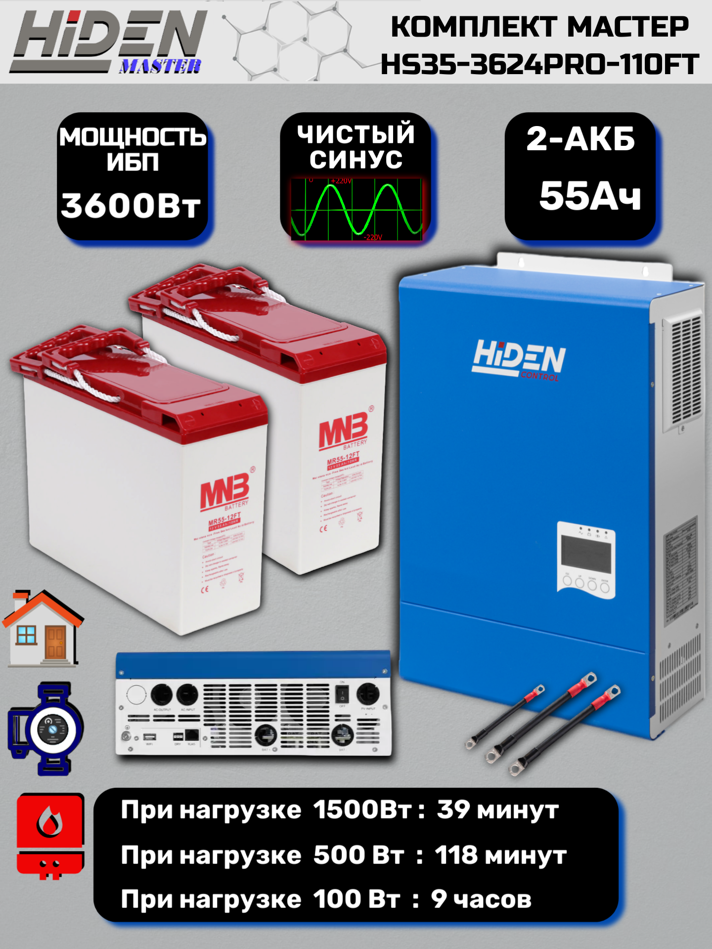 Комплект ИБП мастер HS35-3624PRO-110FT для дома, котла, освещения, циркуляционных и скважинных насосов (3600Вт, 110Ач): сравнение цен, характеристики, фото, актуальное наличие и цены.