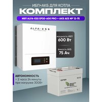 Комплект ИБП с аккумулятором для котла / ИБП для котла ALFA-ESS EP20 PRO 600Вт, 12В + АКБ AES NP 12-75 / бесперебойник для котла отопления / источник бесперебойного питания