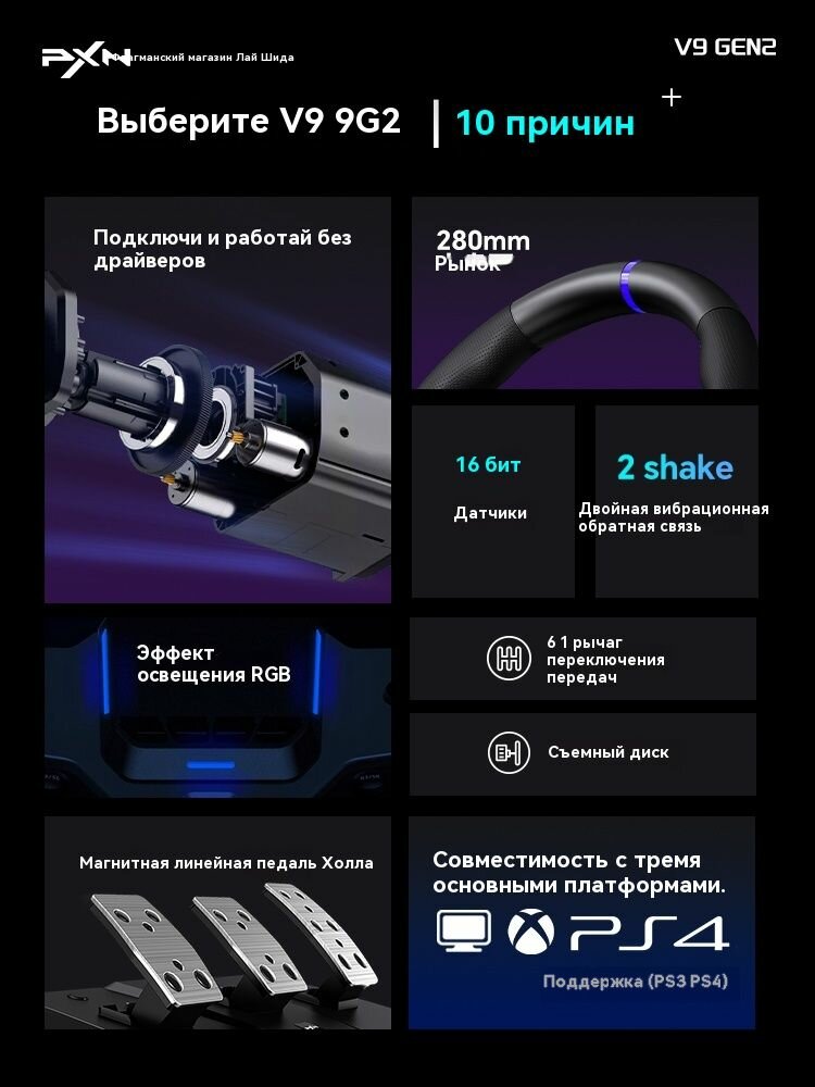 Комплект игрового руля PXN V9Gen2: сравнение цен, характеристики, фото, актуальное наличие и цены.