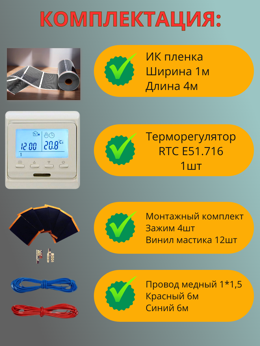 Комплект инфракрасный пленочный теплый пол Rexva Xica XM 310 ширина 1 длина 4 метра и электронный терморегулятор: сравнение цен, характеристики, фото, актуальное наличие и цены.