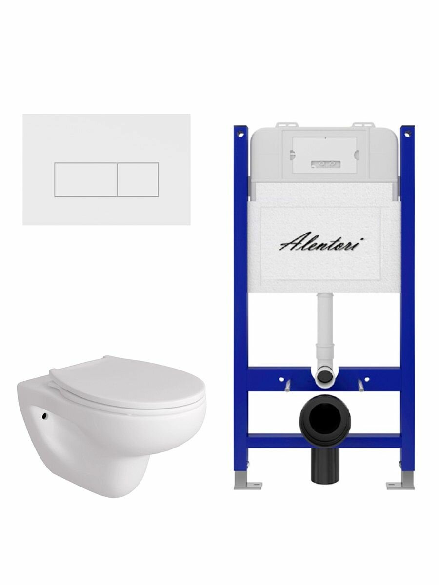 Комплект Инсталляция для унитаза Alentori SISTEMA 50 AL. SIS33T с клавишей Alentori CHIAVE H, белый матовый AL. CHI018WM + Alentori FLUIRE 901 Унитаз безободковый, с микролифтом, белый глян.: сравнение цен, характеристики, фото, актуальное наличие и цены.