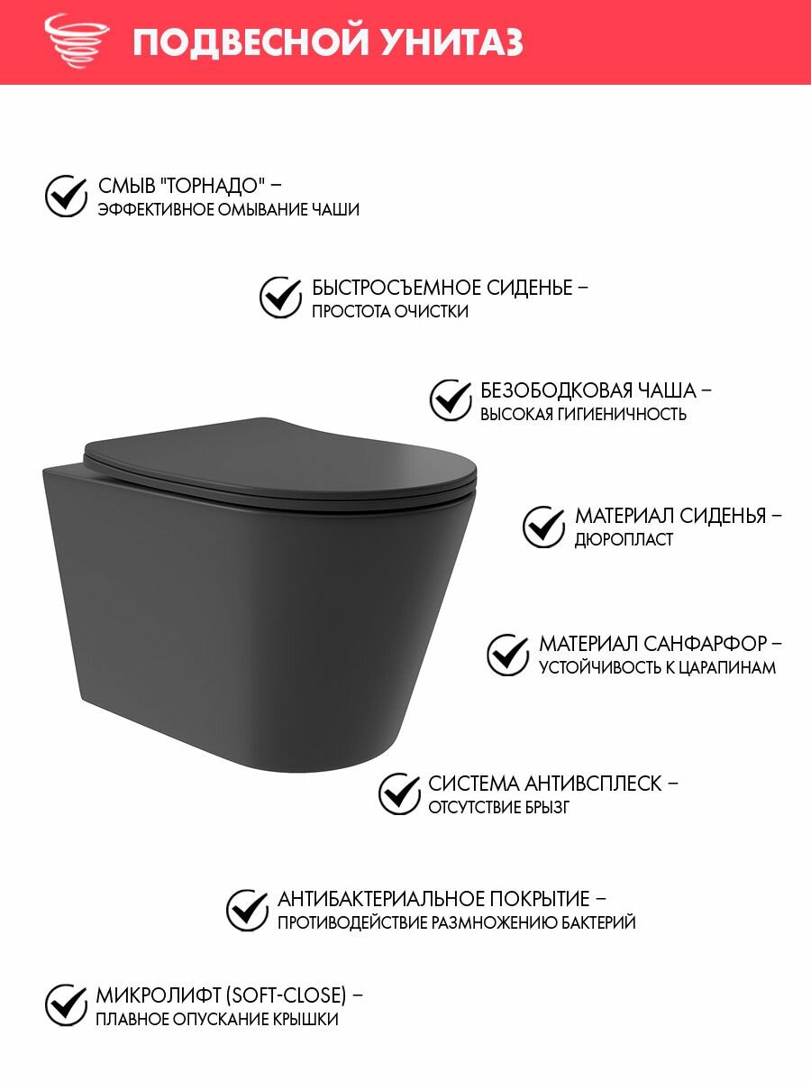 Купить Комплект Инсталляция для унитаза Alentori SISTEMA 50 AL. SIS33T с клавишей Alentori CHIAVE H, белый матовый AL. CHI018WM + Унитаз Long 520*365 безободковый, Vortex, Soft-Close, черный матовый, конус с доставкой по всей России.