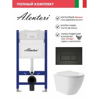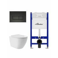Купить Комплект Инсталляция для унитаза Alentori SISTEMA 50 AL. SIS33T с клавишей Alentori CHIAVE H, черный матовый AL. CHI203BM + Унитаз Long 520*365 безободковый, Vortex, Soft-Close, белый глянцевый, овал с доставкой по всей России.