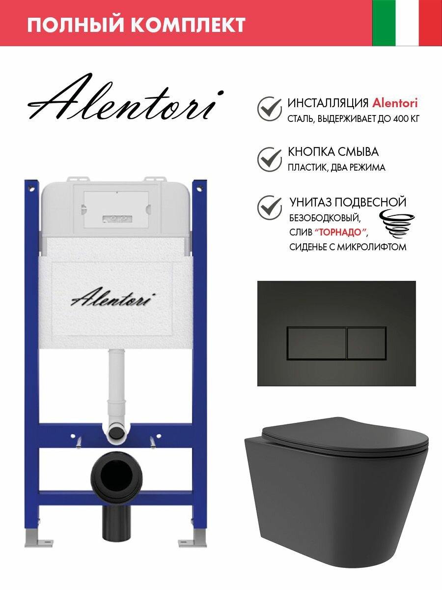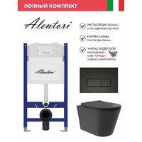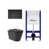 Купить Комплект Инсталляция для унитаза Alentori SISTEMA 50 AL. SIS33T с клавишей Alentori CHIAVE H, черный матовый AL. CHI203BM + Унитаз Long 520*365 безободковый, Vortex, Soft-Close, черный матовый, конус с доставкой по всей России.