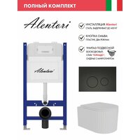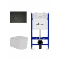 Купить Комплект Инсталляция для унитаза Alentori SISTEMA 50 AL. SIS33T с клавишей Alentori CHIAVE L, черный матовый AL. CHI103BM + Alentori FLUIRE 2101 Vortex Унитаз безободковый, с микролифтом, белый глян. с доставкой по всей России.
