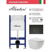 Купить Комплект Инсталляция для унитаза Alentori SISTEMA 50 AL. SIS33T с клавишей Alentori CHIAVE L, черный матовый AL. CHI103BM + Унитаз Long 525*360 безободковый, Vortex, Soft-Close, белый глянцевый, овал с доставкой по всей России.