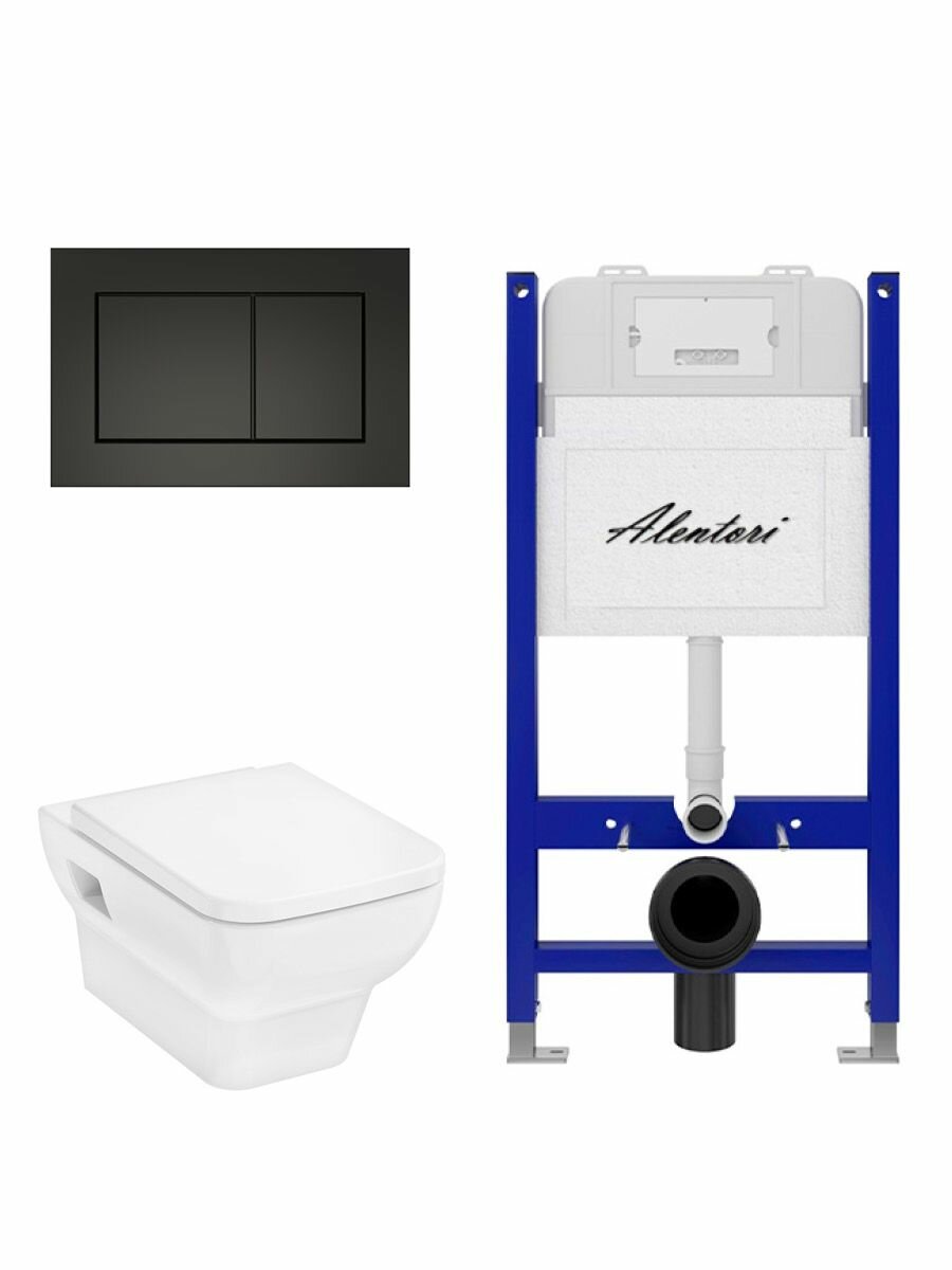 Купить Комплект Инсталляция для унитаза Alentori SISTEMA 50 AL. SIS33T с клавишей смыва Alentori CHIAVE A, черный матовый AL. CHI013BM + Hansgrohe CreekTide Q Унитаз 540×360, с микролифтом, безободковый, белый с доставкой по всей России.