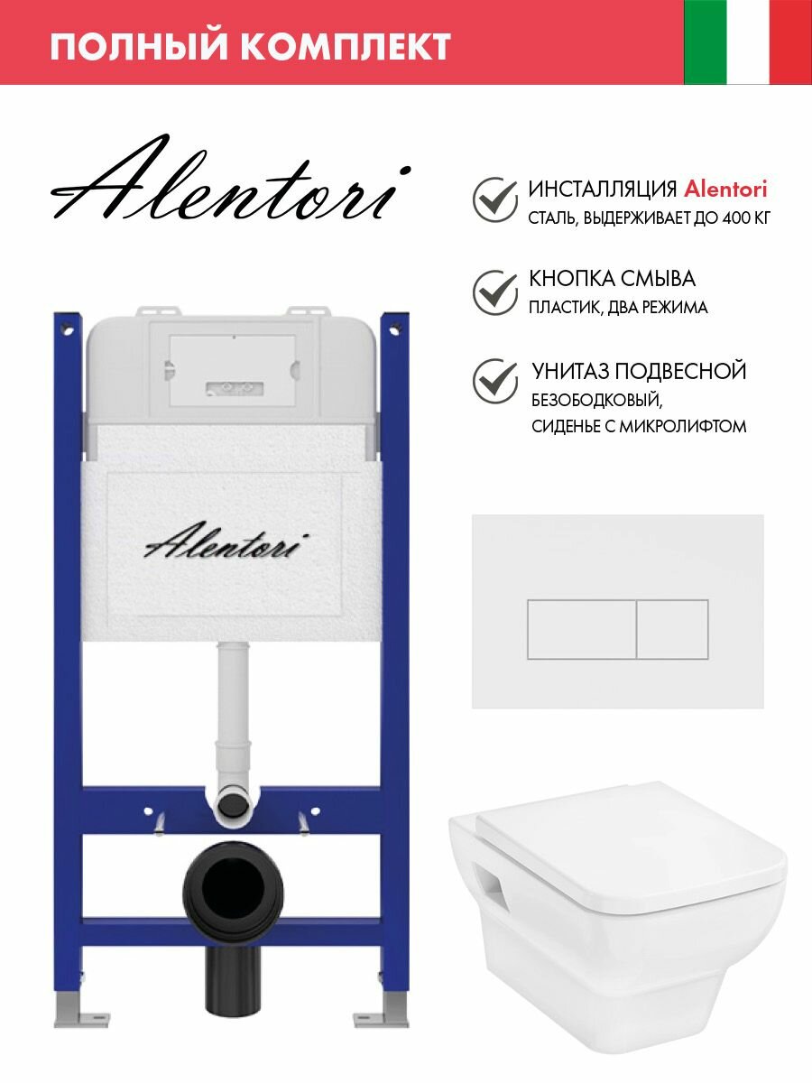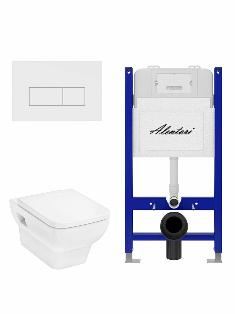 Купить Комплект Инсталляция для унитаза Alentori SISTEMA 50 AL. SIS33T с клавишей смыва Alentori CHIAVE H, белый матовый AL. CHI018WM + Hansgrohe CreekTide Q Унитаз 540×360, с микролифтом, безободковый, белый с доставкой по всей России.