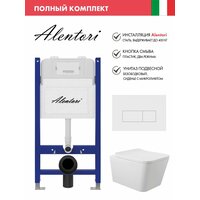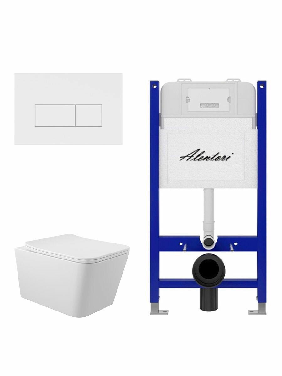 Купить Комплект Инсталляция для унитаза Alentori SISTEMA 50 AL. SIS33T с клавишей смыва Alentori CHIAVE H, белый матовый AL. CHI018WM + Унитаз 520*370 безободковый, Soft-Close, белый глянцевый, форма квадрат с доставкой по всей России.